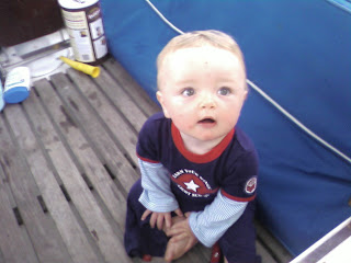 He has had 'play dates' here twice with Mason who is the 11 month old son of one of the City Marina employees. We went over to their house the other day and John walked in like he owned the place, he was not the least bit shy about playing with Mason's toys (he especially liked the car consul that made awful noise- MOM). Hopefully we'll get the boys together again before we leave!